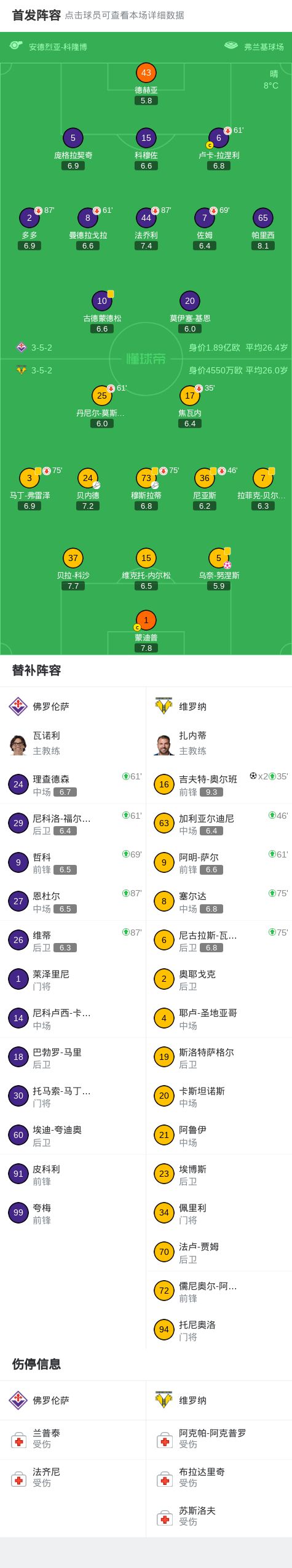 第22分钟,佛罗伦萨打入一球,但裁判鸣哨在先,攻方犯规进球无效